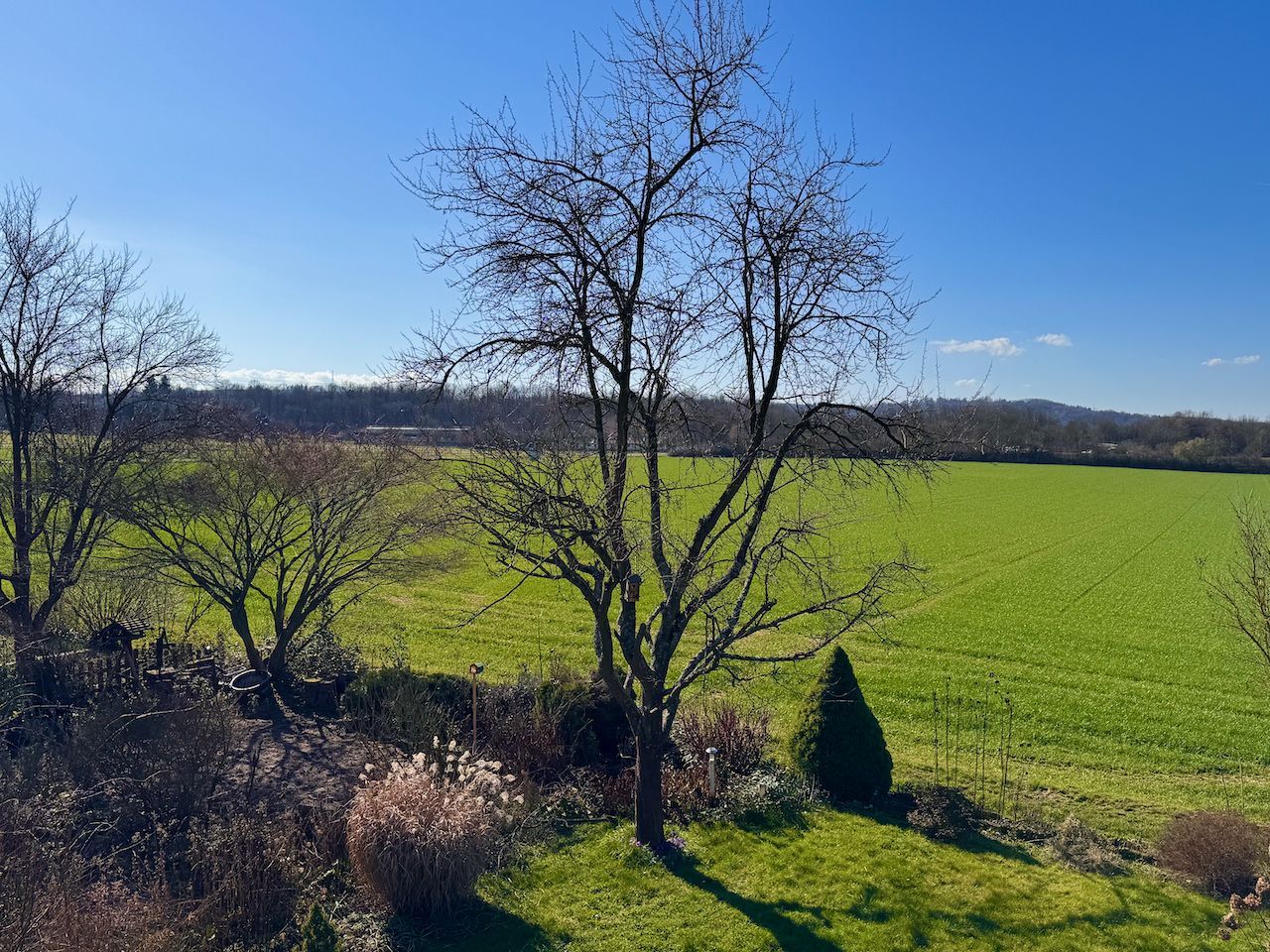 Diese Doppelhaushälfte wurde im Jahr 1995 in solider Massivbauweise errichtet und befindet sich in einem gepflegten Gesamtzustand. Das Grundstück hat eine Fläche von 277 m². Besonders hervorzuheben ist die attraktive Ortsrandlage direkt am Feld, die Ruhe und ein angenehmes Wohngefühl bietet. Die vom Wohnzimmer aus begehbare Terrasse mit West-Südwest-Ausrichtung ist mit einer elektrischen Markise ausgestattet und lädt zu entspannten Stunden im Freien ein.