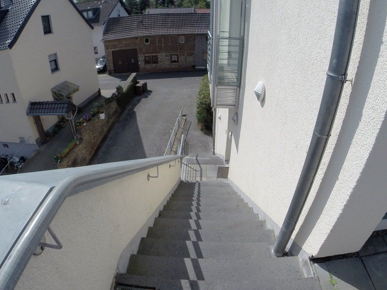 Jede der Wohnungen verfügt über einen eigenen Eingang. Bei dieser Wohnung ist der Eingang (Nordseite des Hauses) über einen Laubengang mit separater Treppe mit sehr schönem Ausblick erreichbar.