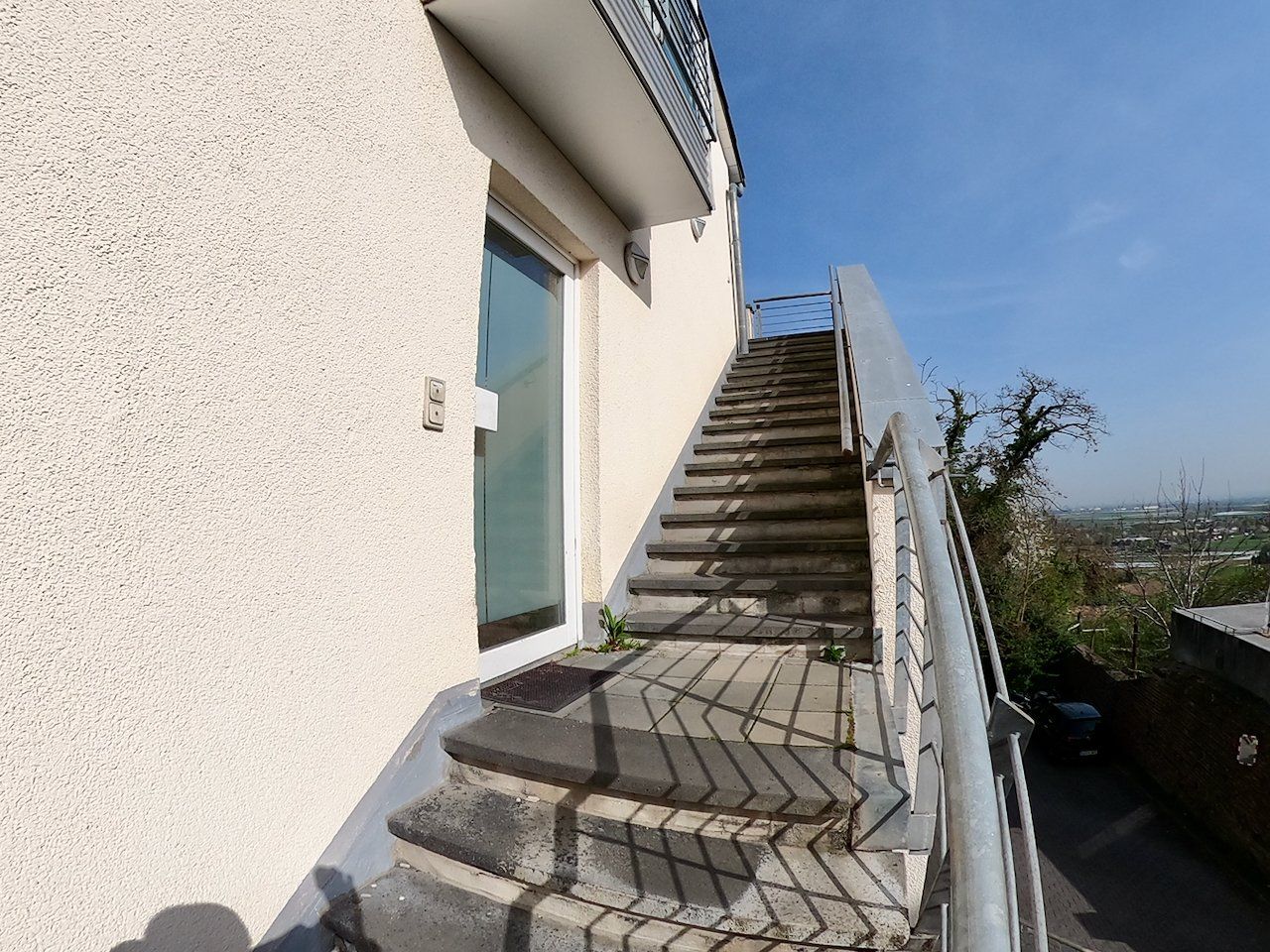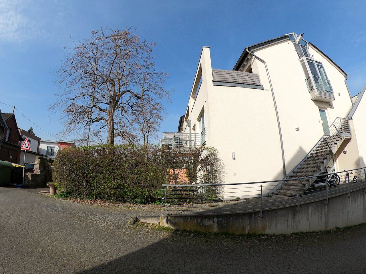 Diese sehr schöne 4 Zimmer- Wohnung mit einem kleinen Südbalkon und kleiner Nord-Ost-Loggia befindet sich in der ersten Etage einer außergewöhnlichen Wohnanlage in Bornheim-Brenig und ist ideal für 2 bis 3 Personen geeignet. Jede der Wohnungen verfügt über einen eigenen Eingang. Bei dieser Wohnung ist der Eingang über die Treppe an der Ostseite des Gebäudes erreichbar. Über diese Treppe gelangen Sie direkt zur Eingangstüre der Wohnung, welche sich in der Küche befindet.