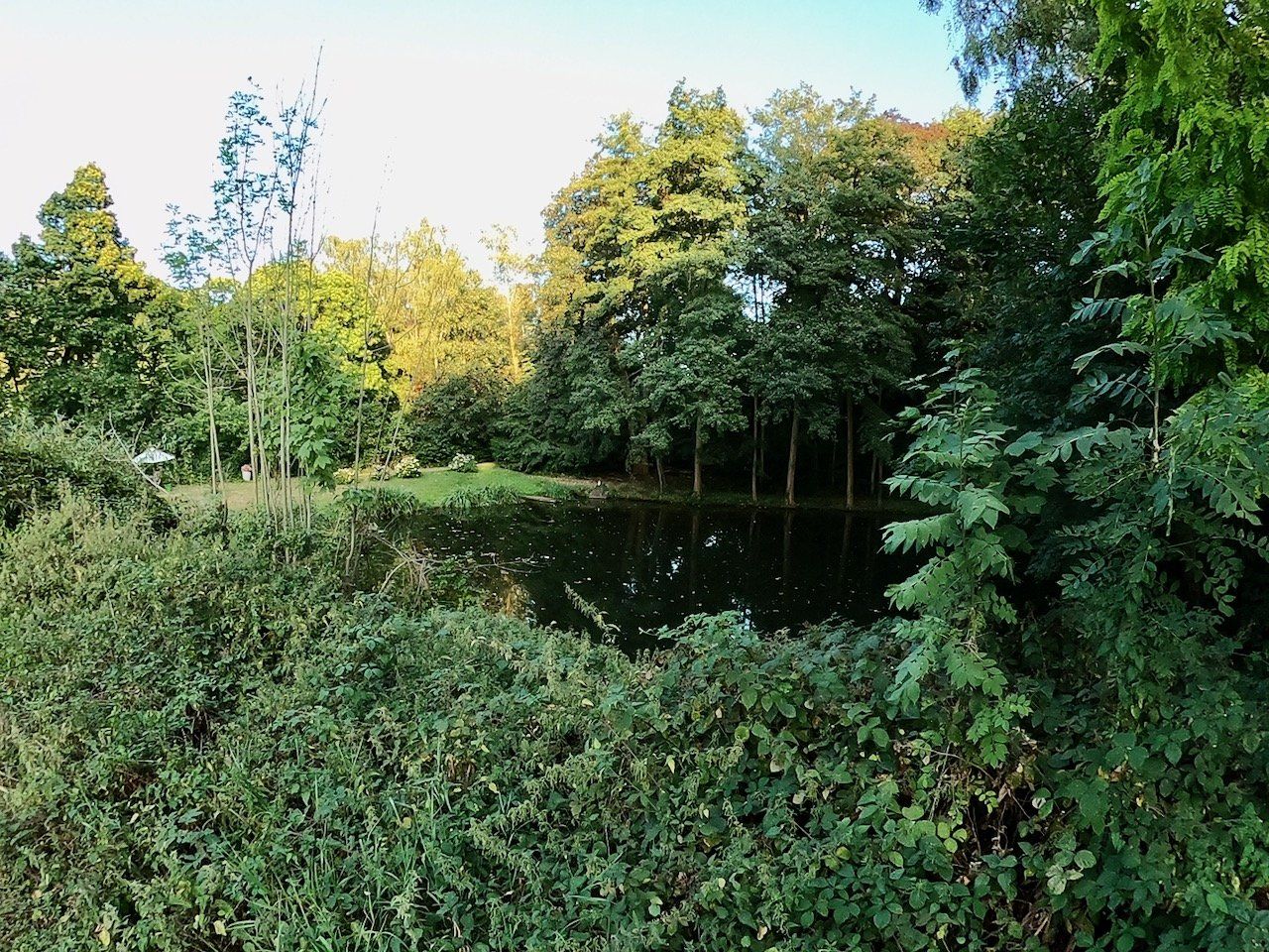 Die Terrasse bietet einen sehr schönen Blick über den angrenzenden kleinen See.