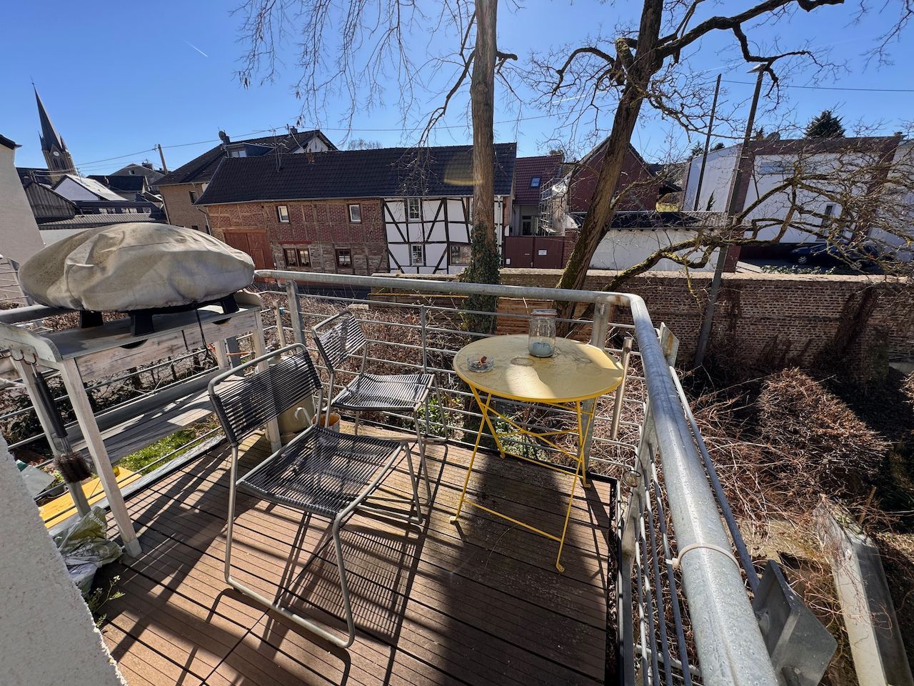 Diese sehr schöne 3-Zimmer-Wohnung mit einem kleinen Südbalkon befindet sich in der ersten Etage einer außergewöhnlichen Wohnanlage in Bornheim-Brenig und ist ideal für 1 bis 2 Personen geeignet. Jede der Wohnungen verfügt über einen eigenen Eingang. Bei dieser Wohnung ist der Eingang über die Treppe eines Gründaches mit sehr schönem Ausblick erreichbar. Über diese Treppe gelangen Sie direkt zur Eingangstüre der Wohnung, welche sich in der Küche befindet.